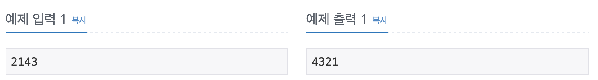 배열을 정렬하는 것은 쉽다. 수가 주어지면, 그 수의 각 자리수를 내림차순으로 정렬해보자. 입력첫째 줄에 정렬하고자하는 수 N이 주어진다. N은 1,000,000,000보다 작거나 같은 자연수이다. 출력첫째 줄에 자리수를 내림차순으로 정렬한 수를 출력한다. ![]() |