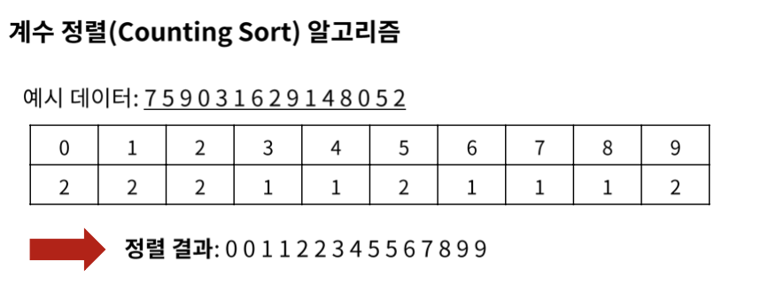 배열의 인덱스를 특정한 데이터의 값으로 여기는 정렬방법