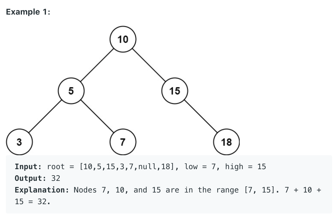 Given the root node of a binary search tree and two integers low and high, return the sum of values of all nodes with a value in the inclusive range [low, high].![]() ![]() Constraints: