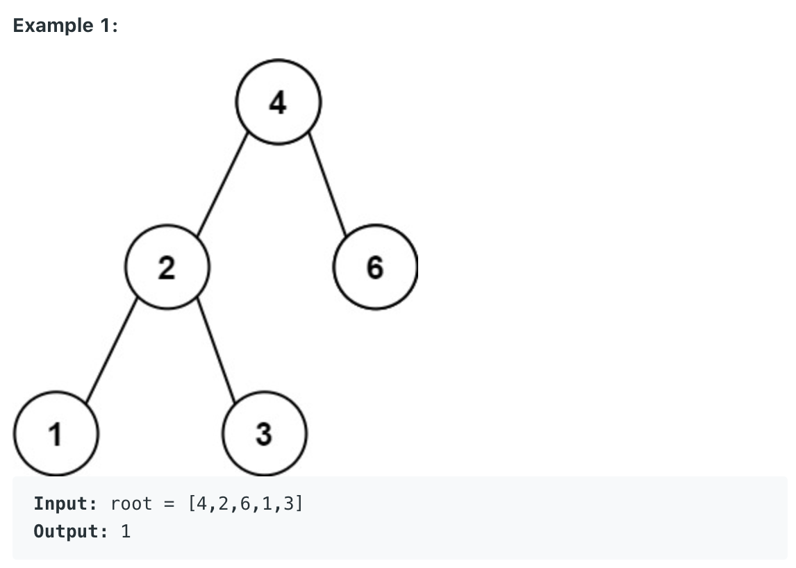 Given the root of a Binary Search Tree (BST), return the minimum difference between the values of any two different nodes in the tree.![]() ![]() Constraints: