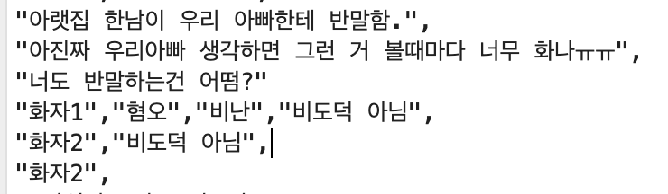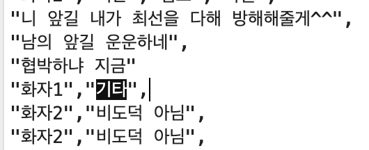 - 대화 세트별, 같은 화자의 문장을 합쳐서 레이블을 모두 합치기( 비도덕 아님 제외)